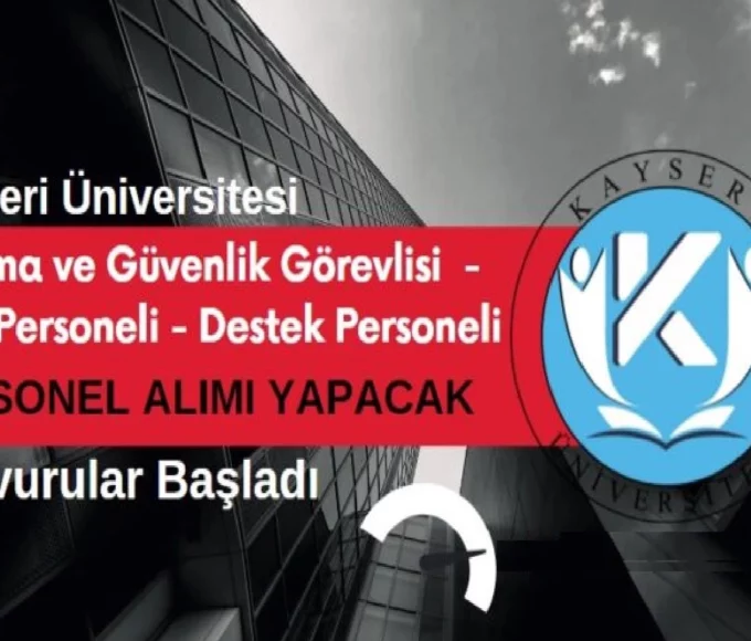 En az Lise Mezunu Güvenlik, Büro Personeli ve Destek Personeli Alınacak Kayseri Üniversitesi 32 Sözleşmeli Personel alımı için ilan yayınlandı. Yayımlanan ilana başvurular...