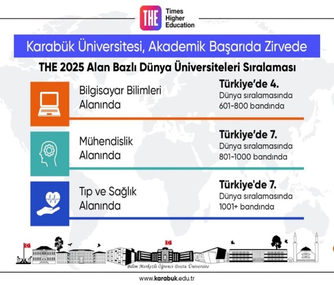 Karabük Üniversitesi, Times Higher Education’ın alan bazlı dünya üniversiteler sıralamasında Türkiye’de bilgisayar bilimleri alanında 4., mühendislik, tıp ve sağlık alanında ise 7. sırada...