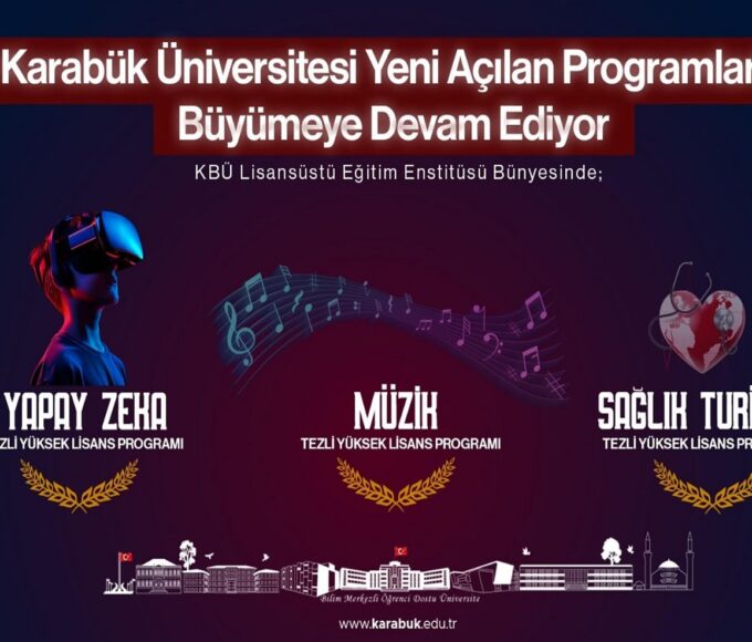 Karabük Üniversitesi (KBÜ) Lisansüstü Eğitim Enstitüsü bünyesinde Yapay Zeka Tezli Yüksek Lisans Programı, Müzik Tezli Yüksek Lisans Programı ve Sağlık Turizmi Tezli Yüksek...