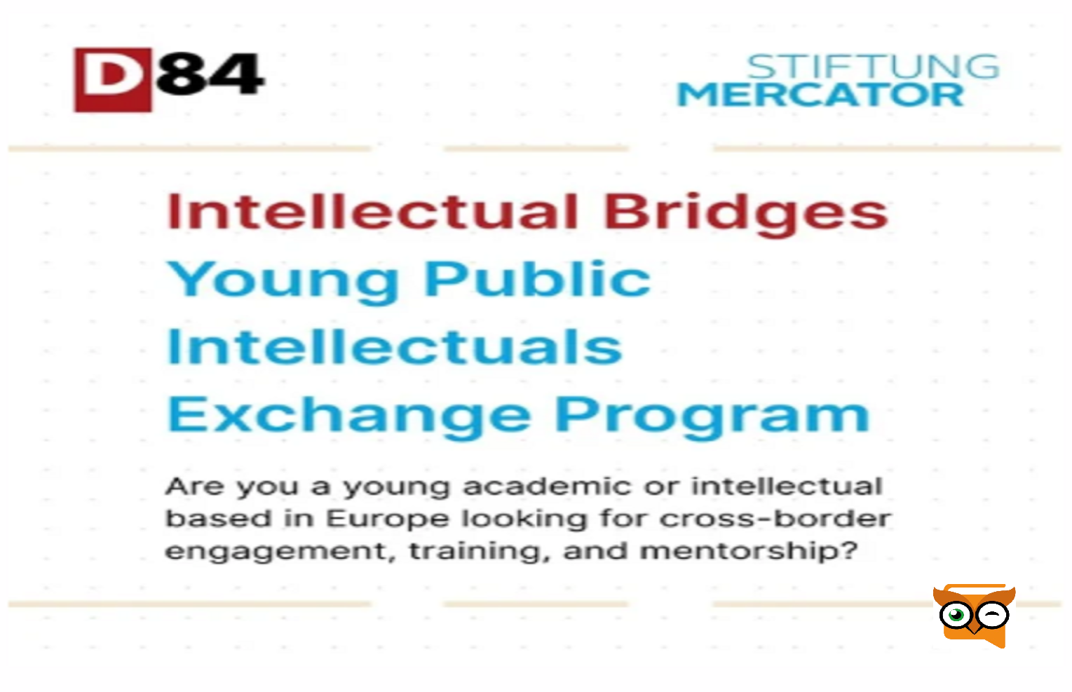 Stiftung Mercator desteğiyle, Türkiye merkezli bağımsız ve kâr amacı gütmeyen bir dernek olan 1984 Derneği (D84), Avrupa genelinden genç akademisyen ve uzmanları, Entelektüel Köprüler: Türkiye – Avrupa Genç Kamu Entelektüelleri Değişim Projesine başvurmaya davet etmektedir. Bu program, genç akademisyen ve entelektüellerin Türkiye ve Avrupa arasında ortaklıklar kurmasını, birbirlerinden öğrenmelerini ve kamu entelektüeli olarak kapasitelerini geliştirmelerini teşvik etmeyi amaçlamaktadır.