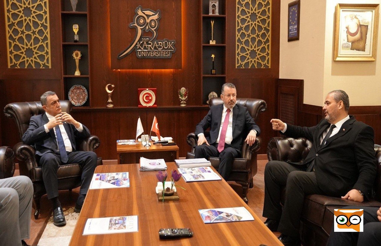 Karabük Üniversitesi Rektörlüğünde düzenlenen programda KBÜ Rektörü Prof. Dr. Fatih Kırışık, AFSÜ Rektörü Prof. Dr. Adem Aslan ve KAEÜ Rektörü Prof. Dr. Mustafa Kasım Karahocagil bir araya geldi.