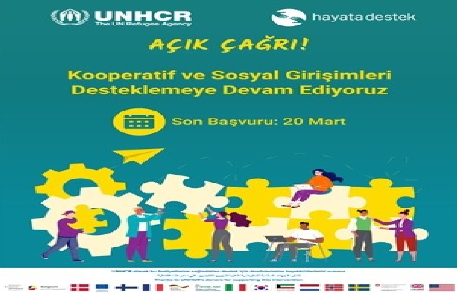Hayata Destek Derneği’nin Kooperatif ve Sosyal Girişimlere Yönelik Destek Programı yeni dönem başvuruları uzatıldı. Birleşmiş Milletler Mülteciler Yüksek Komiserliği (UNHCR) tarafından desteklenen programa son başvuru tarihi 20 Mart 2024 olarak güncellendi.