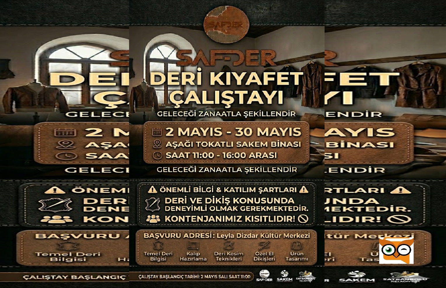 Safranbolu Dericilik ve Turizmi Yaşatma Geliştirme Derneği (SAF-DER), şehrimizin köklü dericilik mirasını modern tasarımlarla geleceğe taşımak amacıyla önemli bir projeye imza atıyor. SAKEM iş birliğiyle düzenlenecek olan “Deri Kıyafet Çalıştayı”, Mayıs ayı boyunca kapılarını zanaat severlere açıyor.