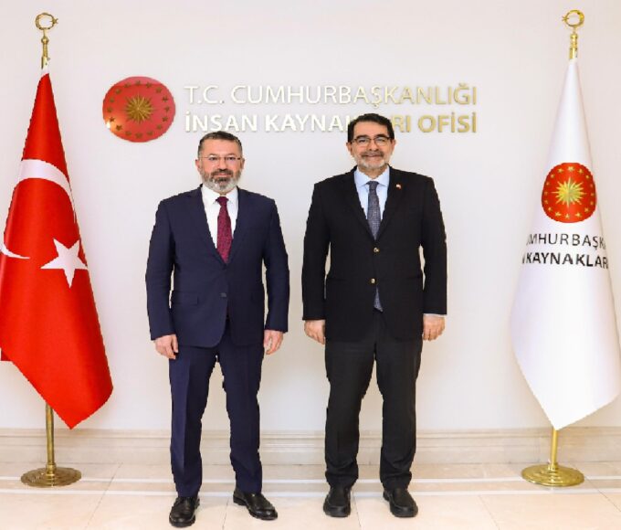 Cumhurbaşkanlığı İnsan Kaynakları Ofisi Başkanı Doç. Dr. Salim Atay ile bir araya gelen Karabük Üniversitesi Rektörü Prof. Dr. Fatih Kırışık iş birliklerine yönelik...
