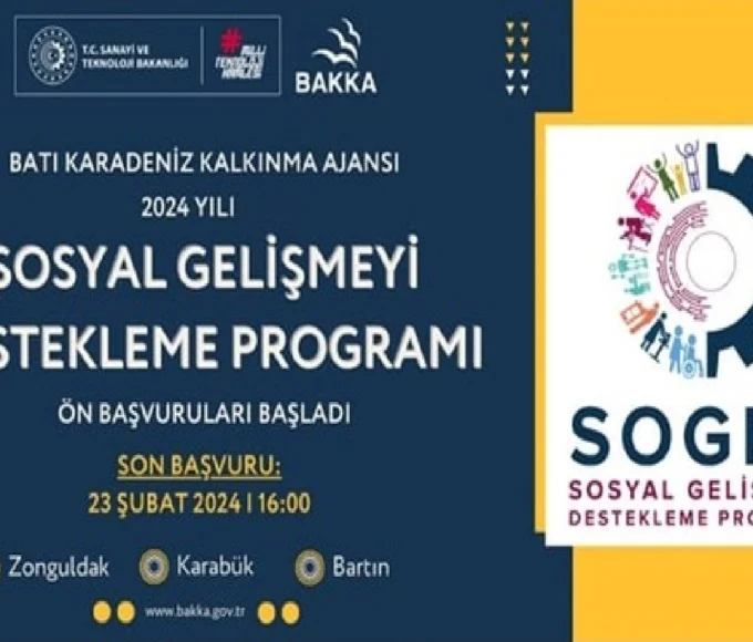 Batı Karadeniz Kalkınma Ajansı (BAKKA) 2024 yılı Sosyal Gelişmeyi Destekleme Programı (SOGEP) ön başvuruları başladı. Programın amacı: Yerel dinamikleri harekete geçirerek yoksulluk, göç ve...